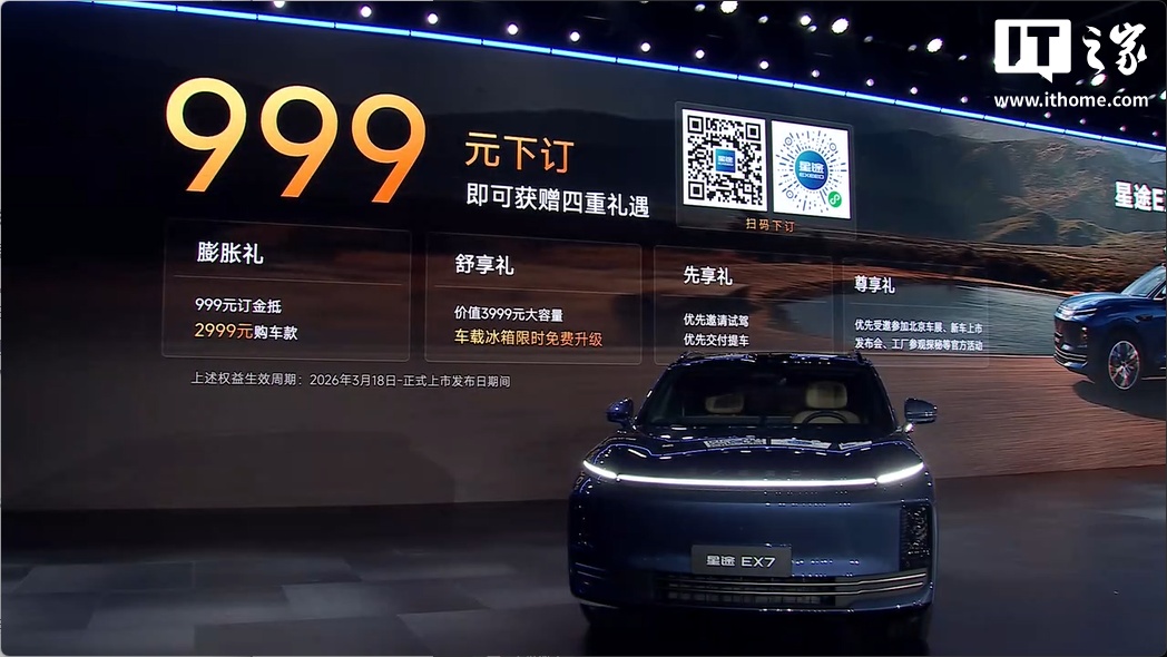- 奇瑞星途 EX7 中大型 SUV 开启盲订:量产首搭航空级线控制动,增程 / 纯电双动力